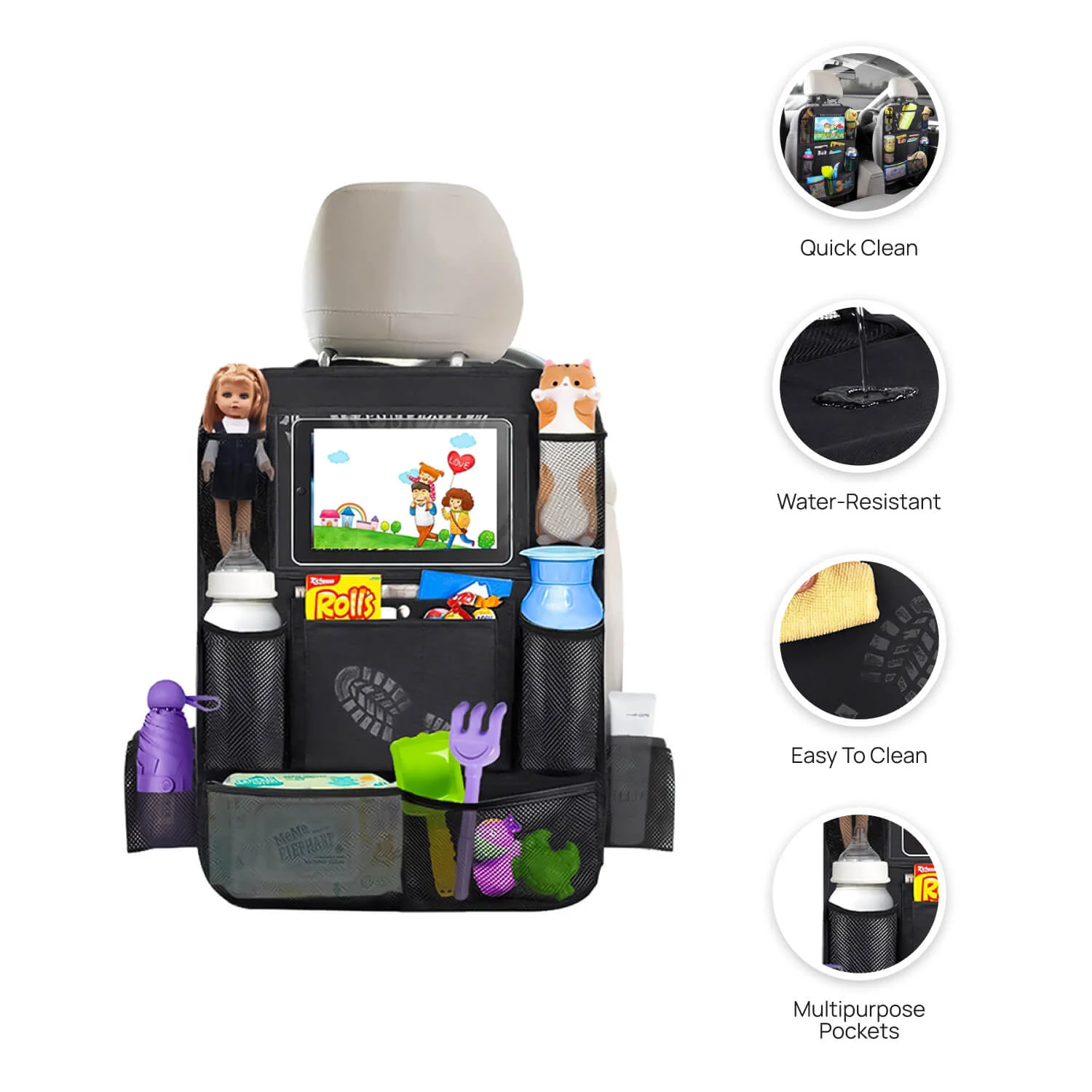 - Multi-Pockets: Fits Snacks, Crayons, Coloring Books, and Hand Sanitizers